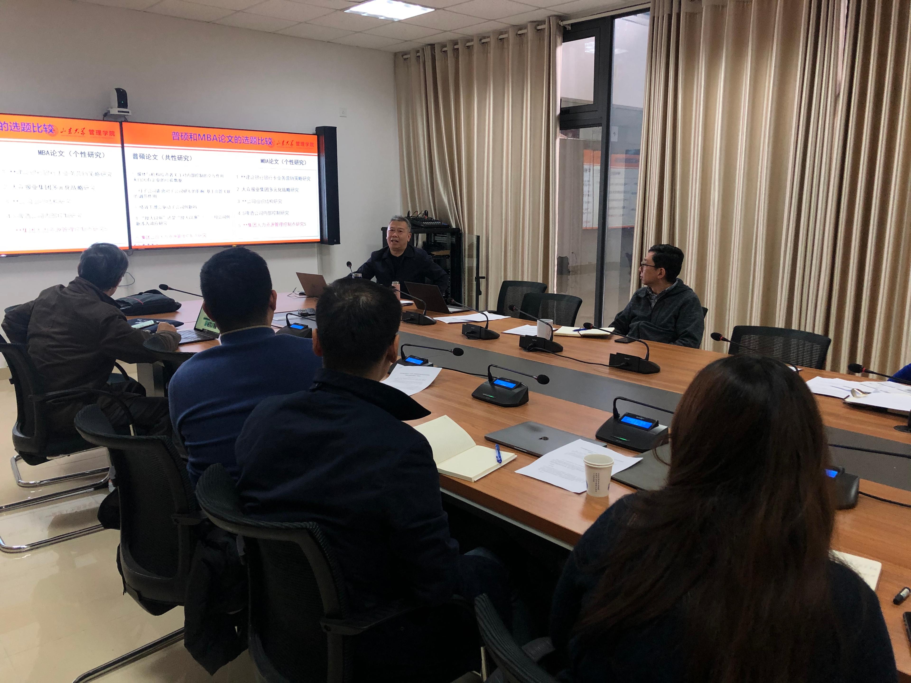 院长陈志军参加会议并作“MBA学位论文写作”讲座,副院长乔岳主持会议。