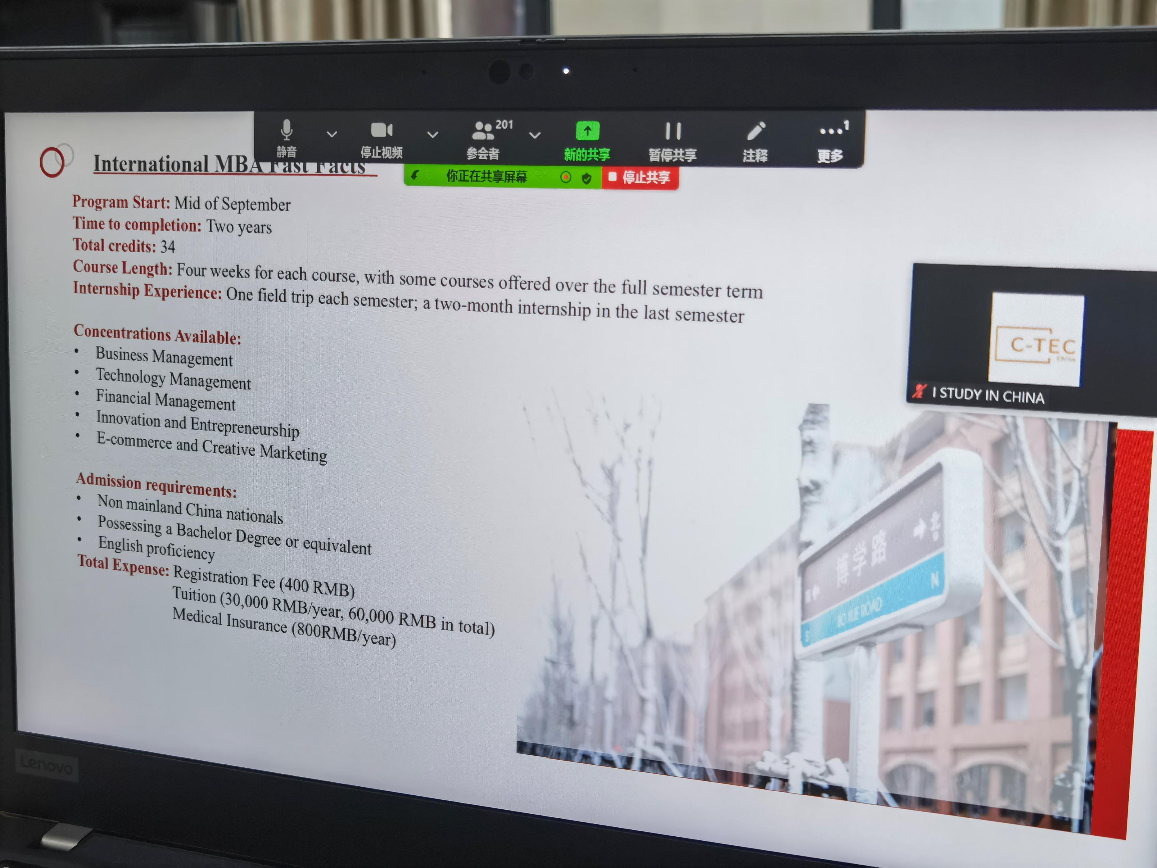 本次招生宣讲会是在学校国际事务部国际学生招生办公室的支持和指导下,依托CTEC搭建的教育文化交流合作平台,面向有意来华进行管理学学习的国际学生进行的专场招生宣讲,有助于推动学院学生培养的国际化。在新冠肺炎疫情防控常态化背景下,学院将线上宣讲作为有效的海外招生途径,积极延揽优质生源,全面提升国际学生招生质量,以期在生源国多元化、自费生招生等方面实现突破。