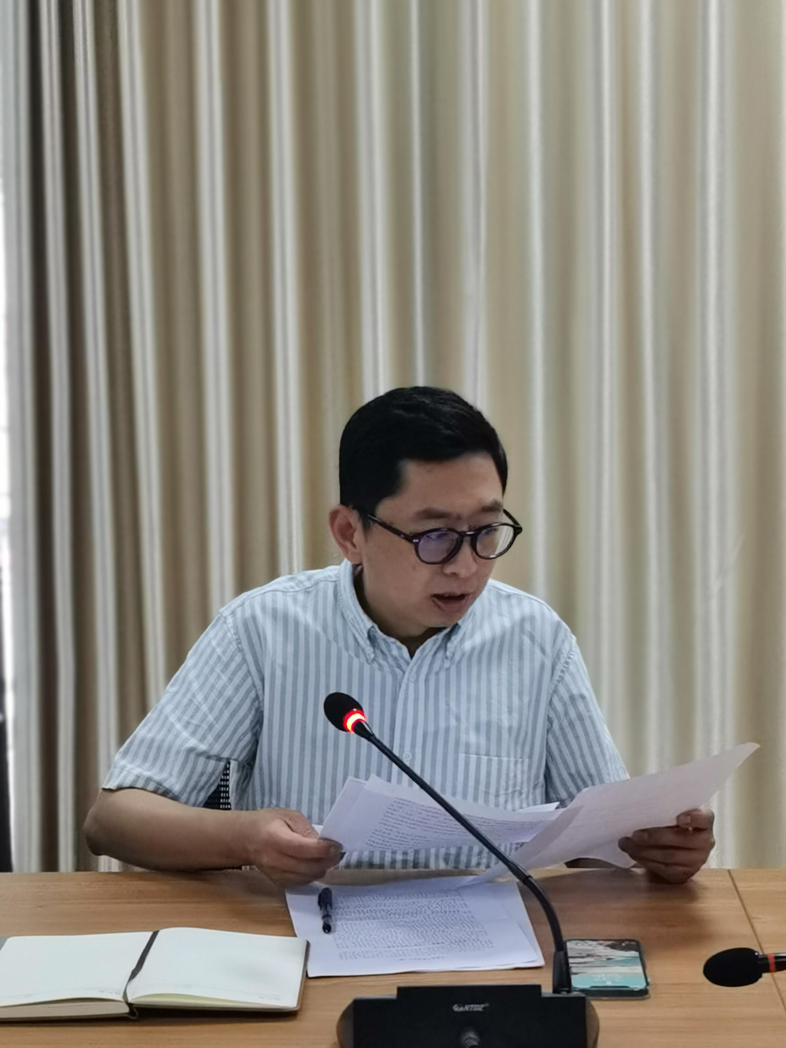 接下来乔岳代表党支部进行2021年上半年工作总结,他报告了党支部上半年党史学习教育开展情况,并从思想建设、支部建设、党建促工作的情况进行详细汇报。