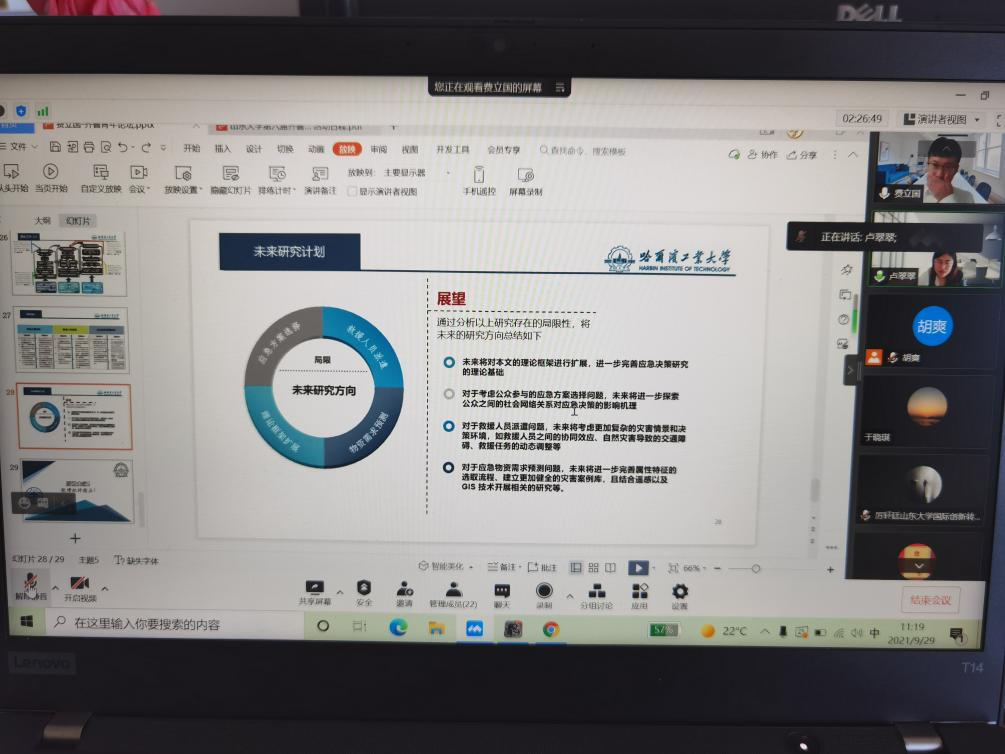 郭庆存教授针对学者报告进行了点评,并就研究方法、研究热点等问题进行了交流。学院与会青年教师卢翠翠、赵云、张武从全球创新指数研究、海洋碳汇、公司创新等方面与青年学者进行了充分交流,期待大家加强学术沟通,共同进行课题研究。