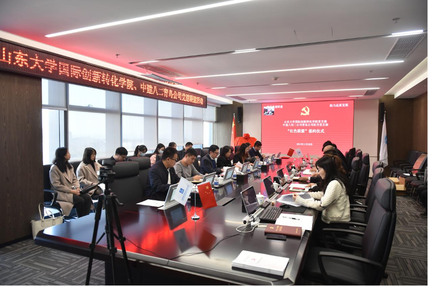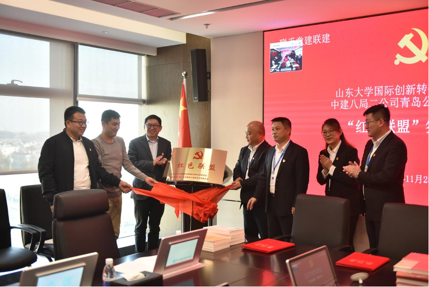 党支部与中建八局二公司青岛公司机关党支部共同举行“红色联盟”签约暨联合党建活动。中建八局二公司青岛公司党总支副书记、执行总经理陈刚,党总支副书记、工会主席张元善,逼喱逼喱