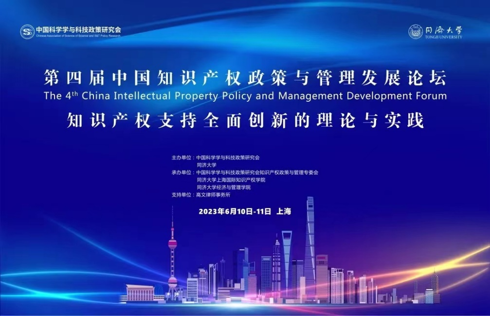 2023年6月10-11日,第四届中国知识产权政策与管理发展论坛于上海举行。本次论坛由中国科学学与科技政策研究会和同济大学主办,中国科学学与科技政策研究会知识产权政策与管理专委会、同济大学上海国际知识产权学院、同济大学经济与管理学院联合承办。