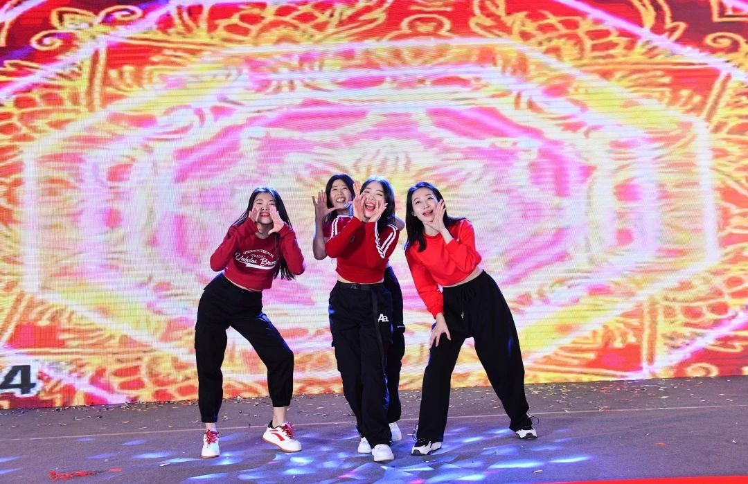 同学们来自四面八方,在各自领域里已经闪闪发光,却依然步履不停,跨越山海汇聚山大开启新的人生旅程。赵娟,沙明辉,黄志华,张慧君带来了三句半《山大真好》,在欢乐中发自内心的感恩,并期待美好未来。马恩森带着小朋友演绎了充满正能量、表达不屈不挠意志和勇往直前的歌曲《孤勇者》,台下的同学们也一起应和,全场氛围达到高潮。胡春彪带来歌曲《突然的自我》,孙国英、徐莉莉、高海雁、陈思蒙带来活力舞蹈《新年快乐》,一起迎接美好的2024年。