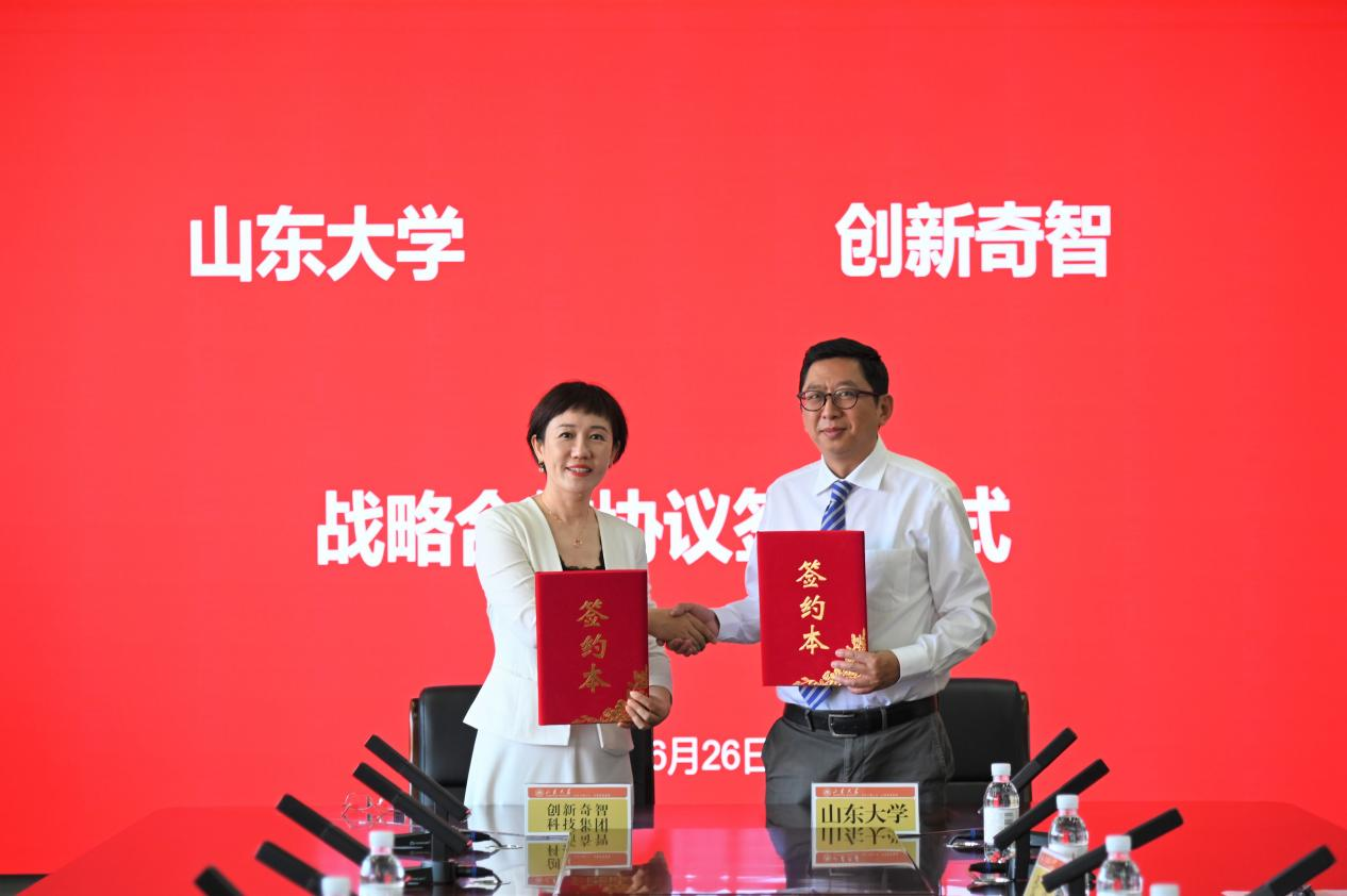 与创新奇智科技集团股份有限公司(以下简称“创新奇智科技集团”)战略合作签约仪式在青岛校区举行。逼喱逼喱