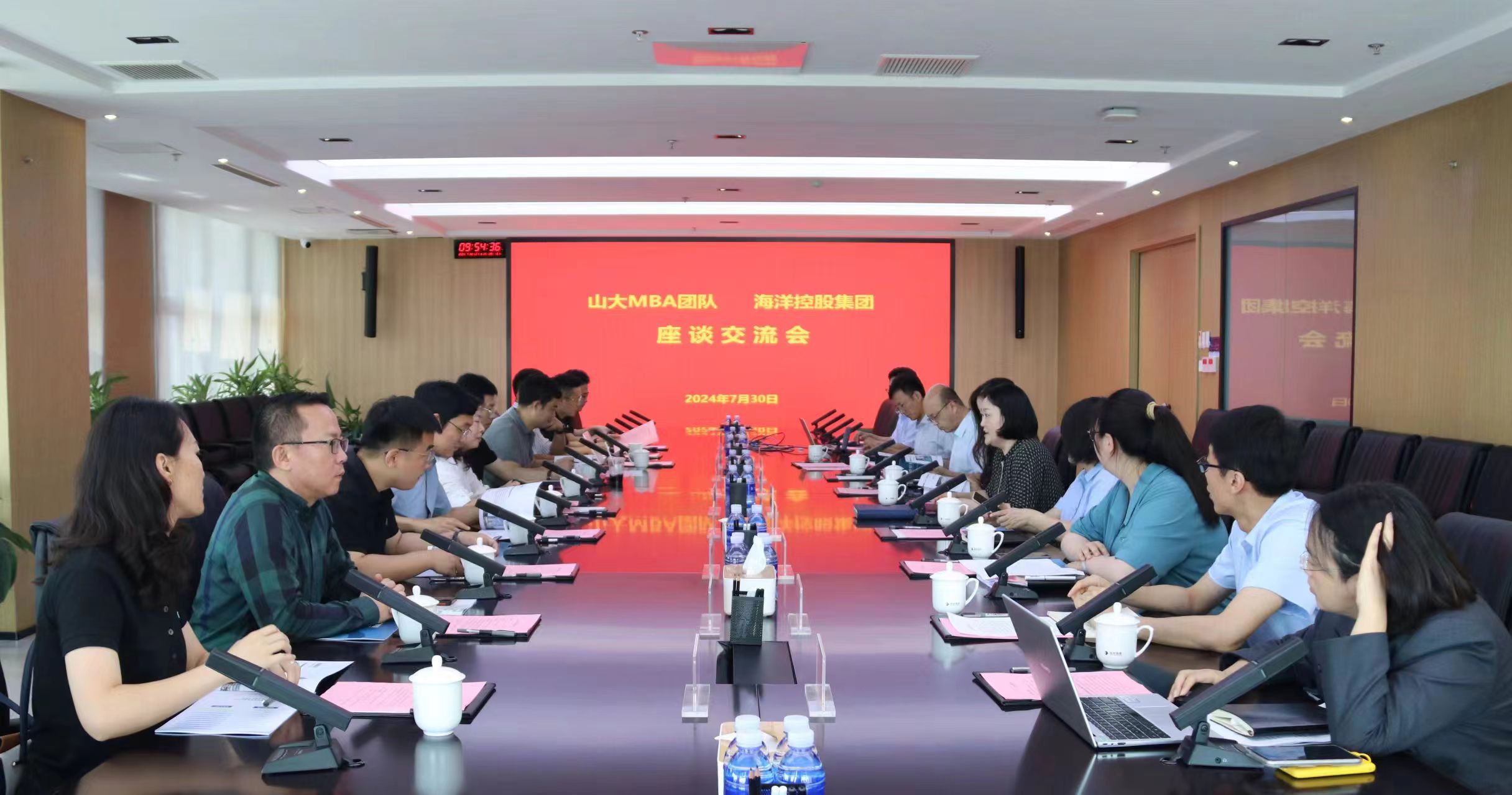 MBA青岛教学点主任陈卓率领MBA团队一行10人赴青岛西海岸新区海洋控股集团有限公司(以下简称“海控集团”)进行学习考察,并通过座谈交流会开展交流。海控集团董事长张栋国,党委委员、副总裁高珊珊,党委委员、纪委书记刘旭华,相关部门负责人参加座谈交流会。