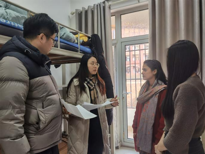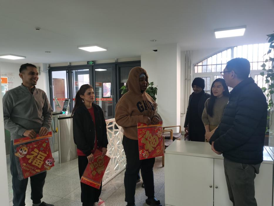 慰问中,乔岳仔细检查了学生宿舍是否断电、卫生是否清理、门窗是否锁好、物品是否整理等,详细询问大家的学习计划和生活安排,提醒大家务必注意交通安全、消防安全、人身和财产安全、防范电信诈骗和网络安全。他向大家介绍了过春节的传统文化,鼓励大家多体验,感受文化魅力。留校学生纷纷表示感谢学校和学院的关心和关怀,将会科学规划寒假时间,专心撰写论文、开展实习实践,保持与家人的经常性联系,让寒假生活过得真正充实而有意义。师生们在祥和愉悦的氛围中合影留念。