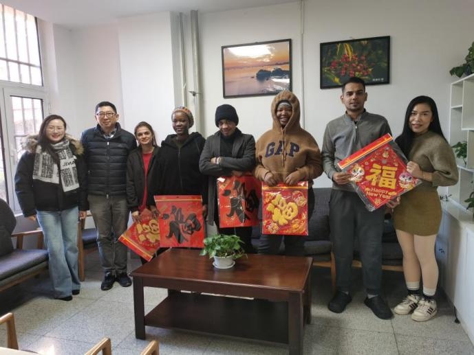 慰问中,乔岳仔细检查了学生宿舍是否断电、卫生是否清理、门窗是否锁好、物品是否整理等,详细询问大家的学习计划和生活安排,提醒大家务必注意交通安全、消防安全、人身和财产安全、防范电信诈骗和网络安全。他向大家介绍了过春节的传统文化,鼓励大家多体验,感受文化魅力。留校学生纷纷表示感谢学校和学院的关心和关怀,将会科学规划寒假时间,专心撰写论文、开展实习实践,保持与家人的经常性联系,让寒假生活过得真正充实而有意义。师生们在祥和愉悦的氛围中合影留念。